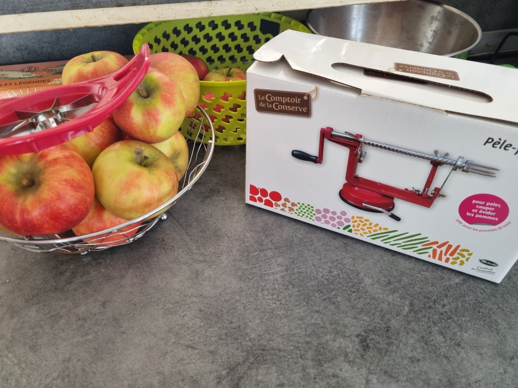 5. couper et éplucher une pomme. Sur la photo, vous pouvez voir deux ustensiles permettant facilement et en toute sécurité d’éplucher et couper des pommes.
